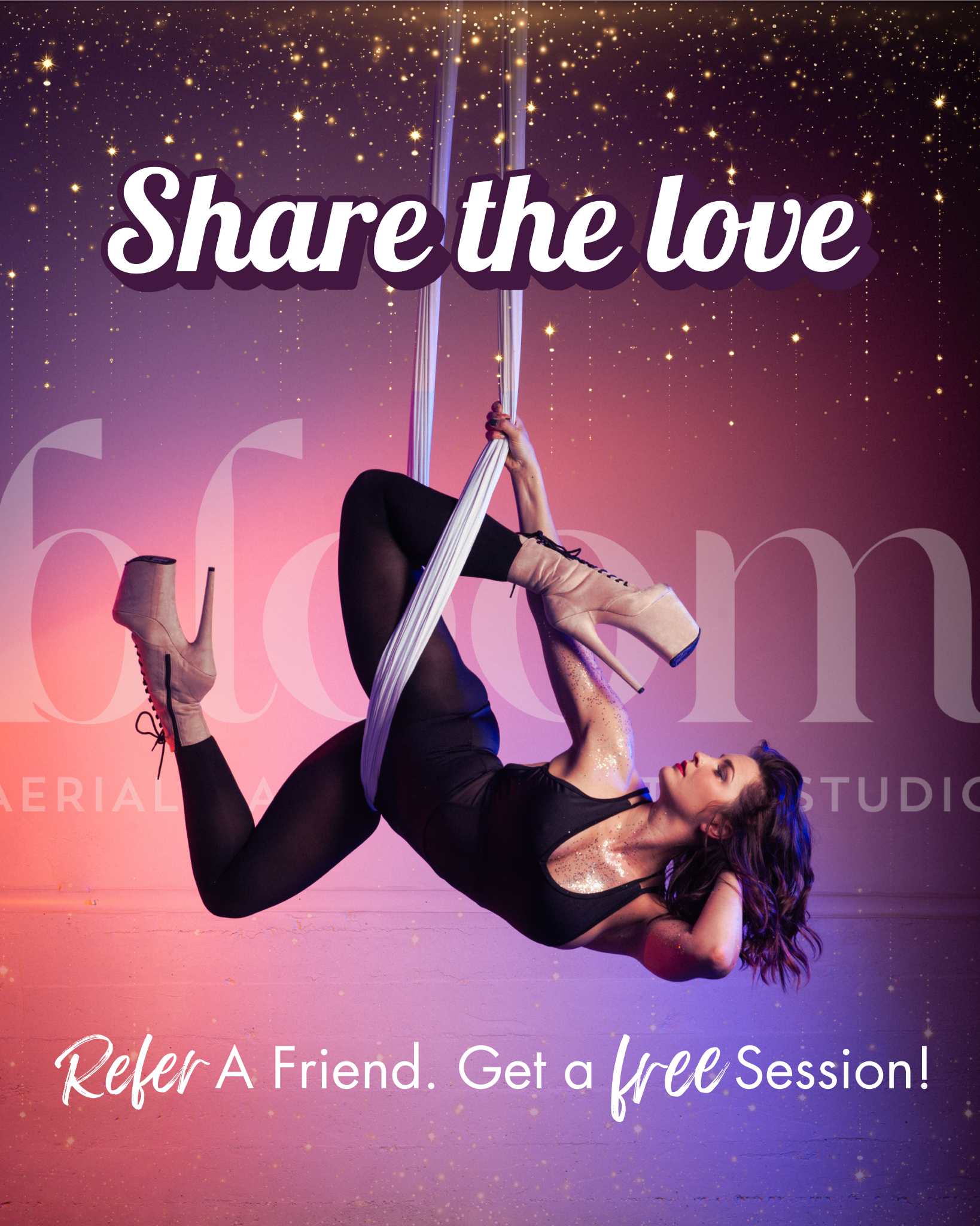 OPEN STUDIO is “open gym” time for aerial training and creating! OPEN STUDIO sessions are scheduled in 60, 90 or 120 min. sessions so you have plenty of time to warm-up and cool-down for your training. You can bring your own apparatus to train on or use available equipment in the studio.